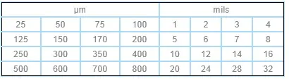 用于對新涂的濕涂層進(jìn)行快速簡易的厚度測量。只需將儀器伸入濕涂層里,直到接觸到底材,從16個(gè)不同的測量點(diǎn)讀出厚度值。刻度如下: